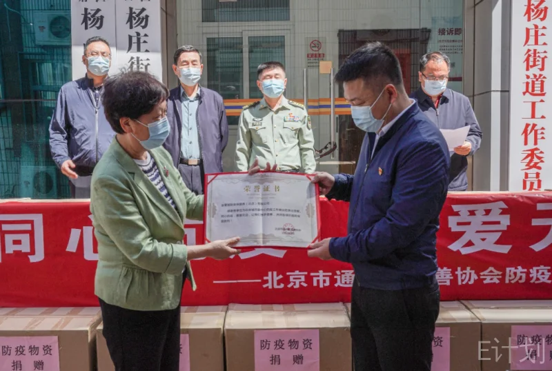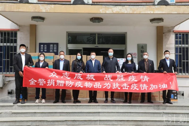 5月13日上午,北京市通州区慈善协会副会长郭文携手金警国际安保服务(北京)有限公司向杨庄街道、通运街道等多个抗疫“前线”街道社区捐赠口罩、消毒液、防护服等一批防疫物资。