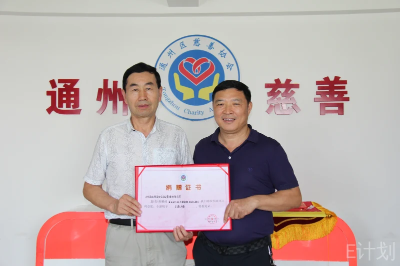 通州区慈善协会储怀森对北京百尚家和商贸有限公司的善举表示感谢,并亲自颁发证书和锦旗。